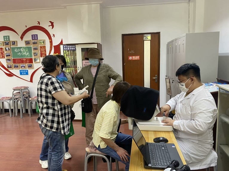 知识讲座结束后,眼底检查活动有序展开。社区工作人员提前做好了场地布置和人员安排,确保检查工作高效、有序进行。眼科医生们使用专业的眼底检查设备,为每一位前来检查的居民进行细致的眼底筛查。